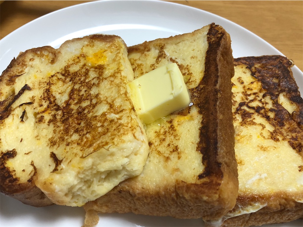 朝食は息子が嫁さんと一緒にがんばって作ってくれたフレンチトースト